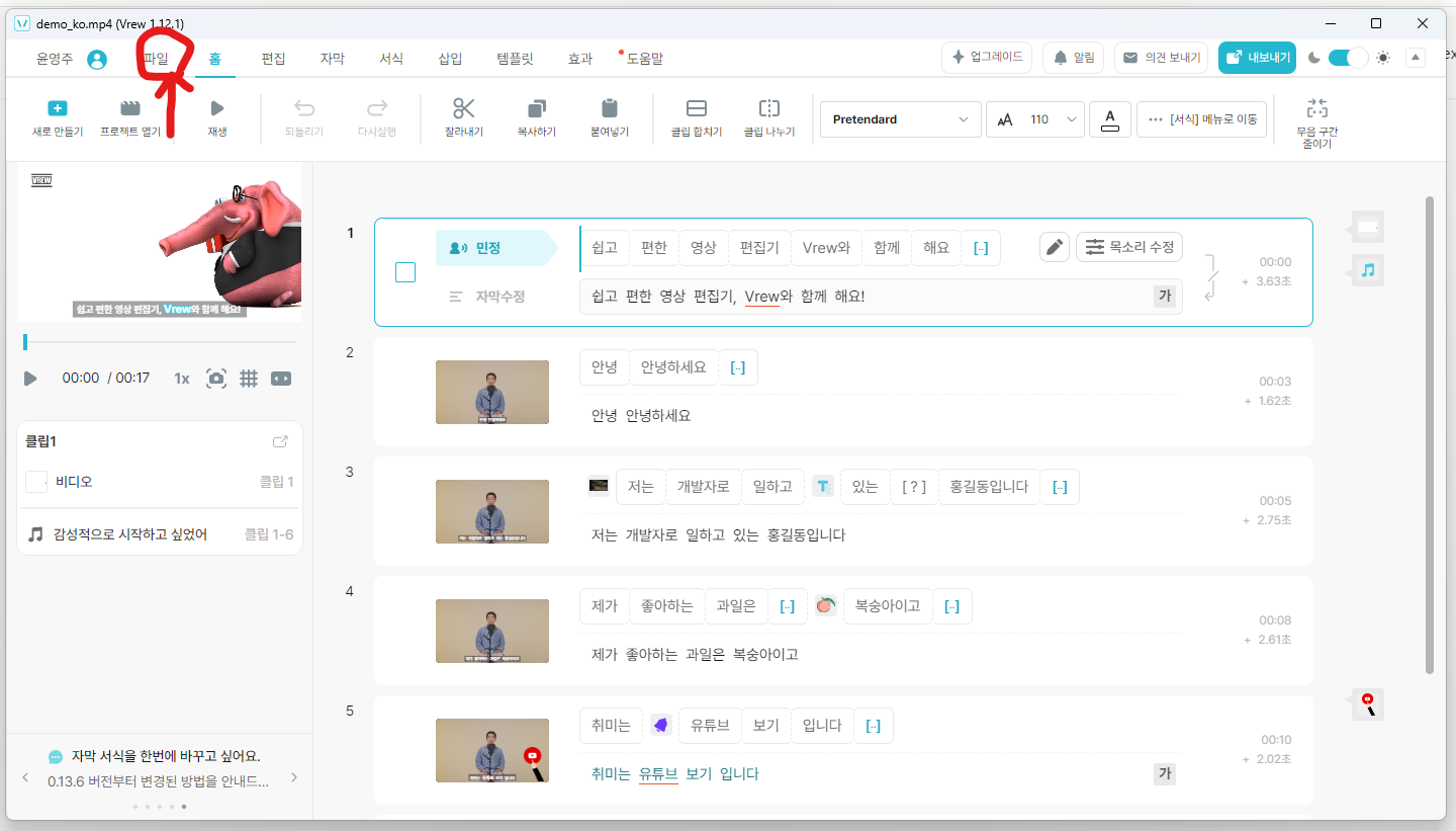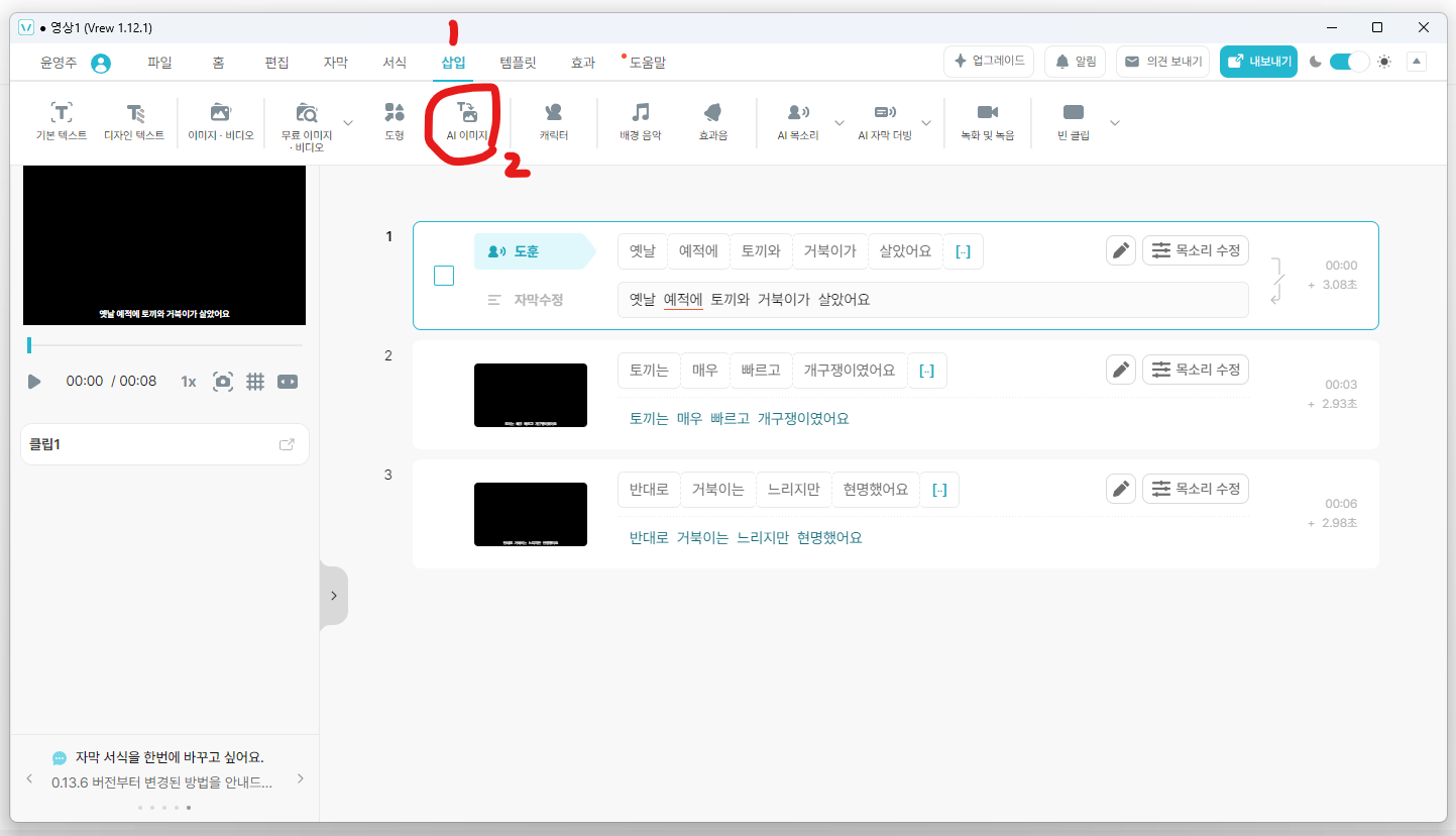 1. Vrew로 동영상 만들기 :