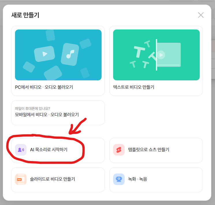 화면 오른쪽 'AI 목소리로 시작하기'를 클릭합니다.