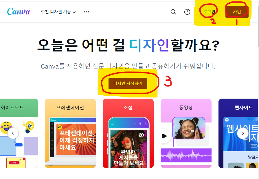 Canva(캔바) 계정을 생성할 수 있습니다.