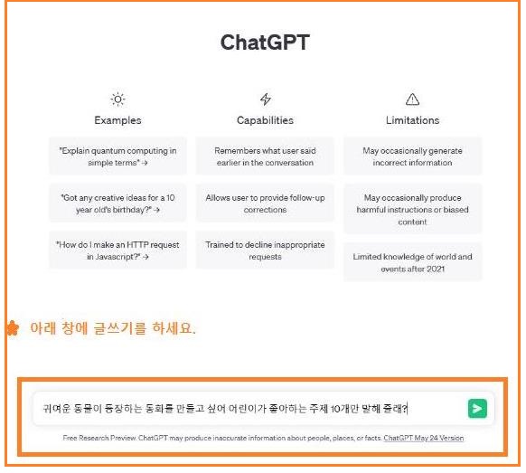 ▶ chatGPT 활용법 : 동화책 만들기, 기획안 작성하기, 문장요약하기,
