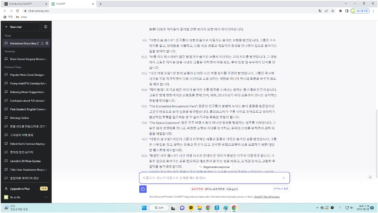 ▶ chatGPT에게 역할을 부여한 다음 대화를 이어나가 보세요.