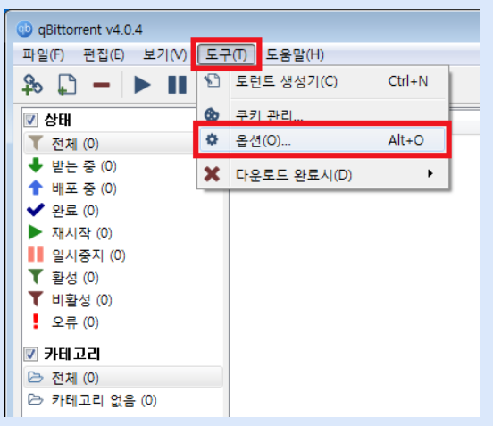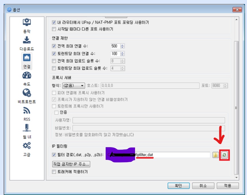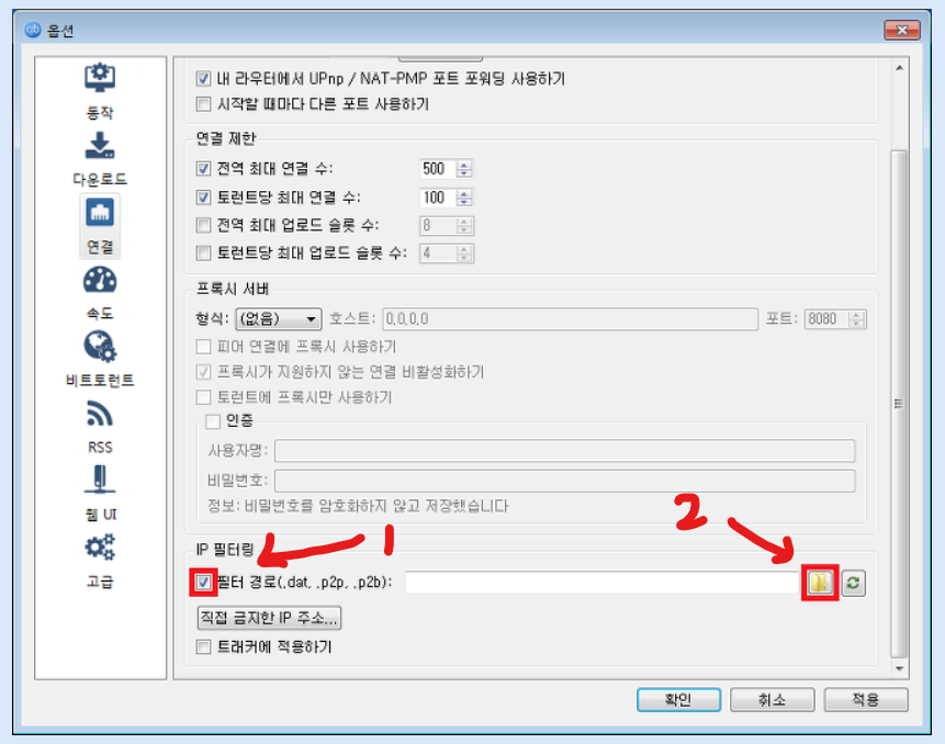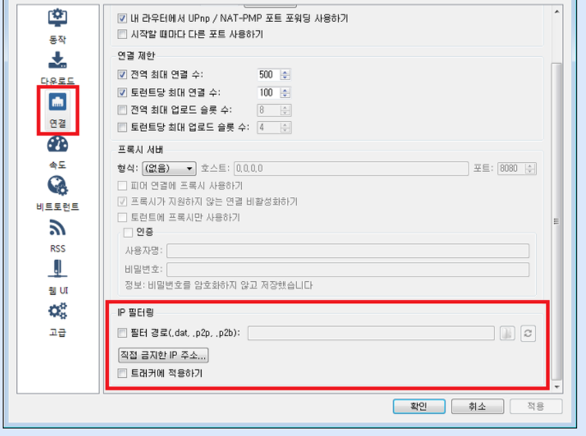 qBittorrent 프로그램에 ip필터링 설정: